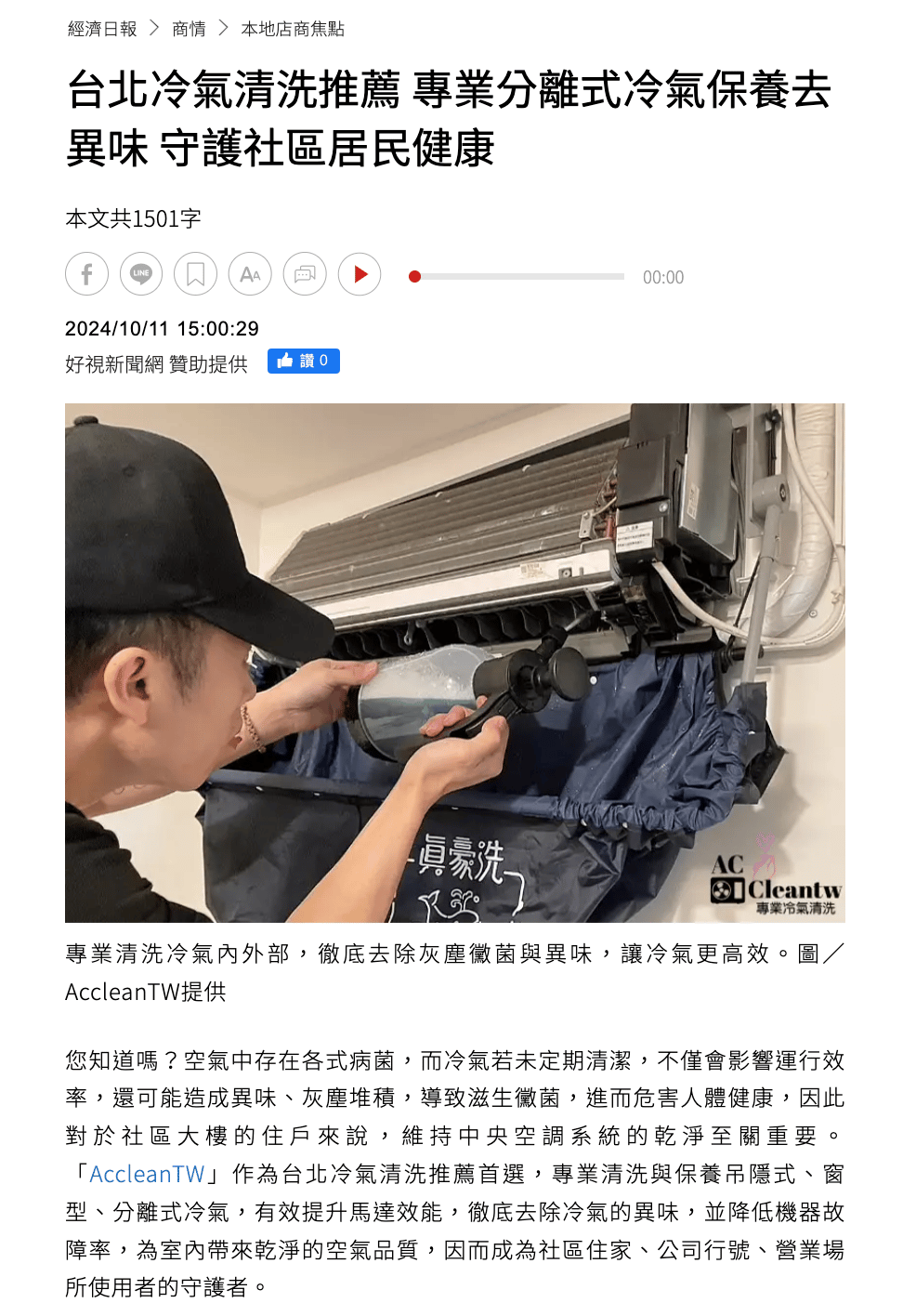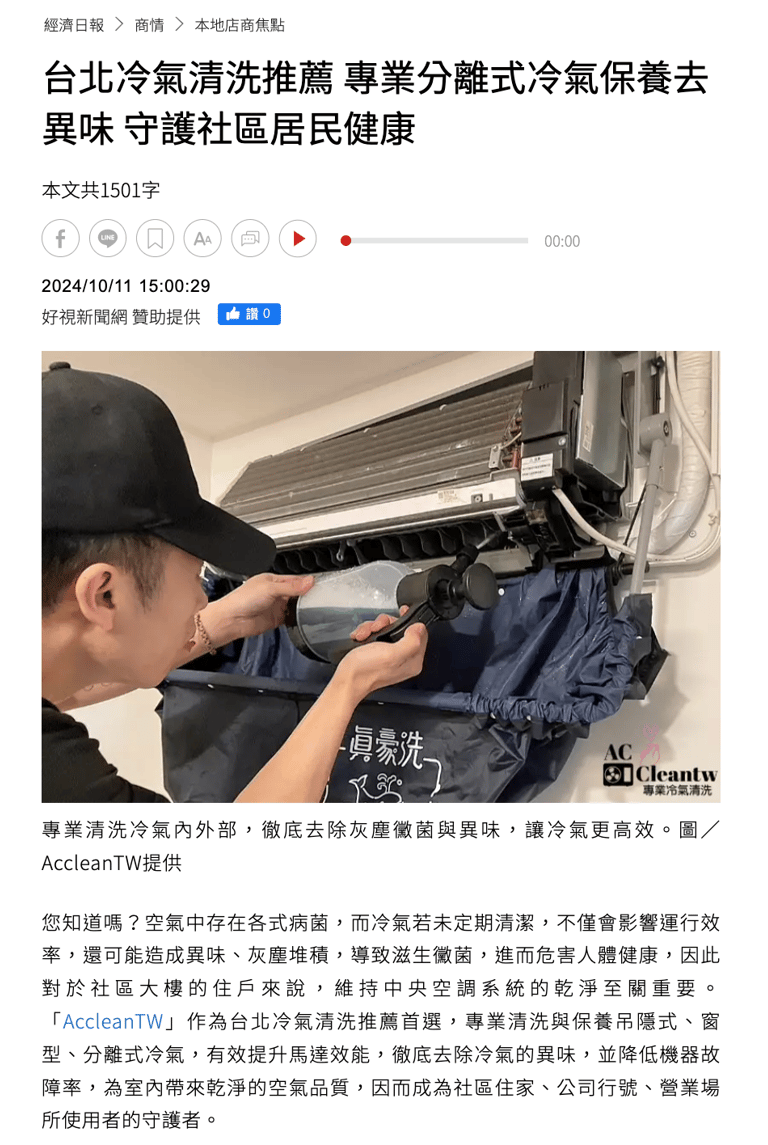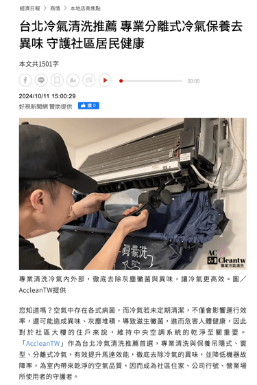 經濟日報- 台北冷氣清洗推薦 專業分離式冷氣保養去異味 守護社區居民健康